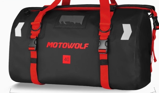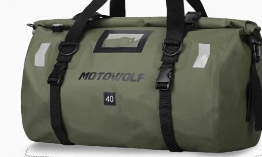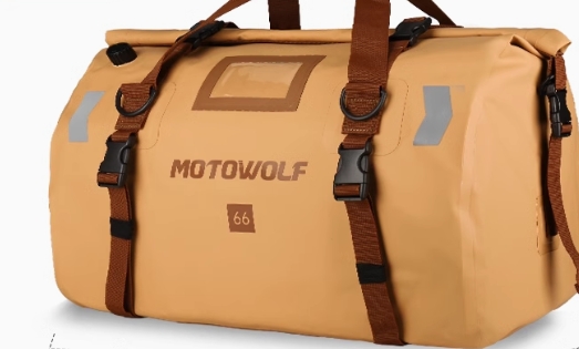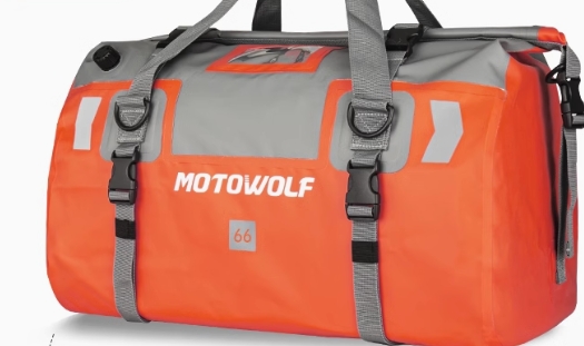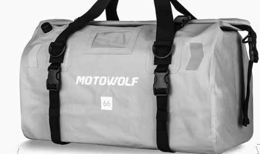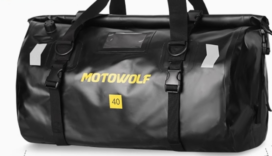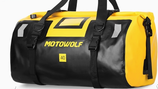 バイク走行時も快適に背負える設計で、大容量の収納力と頑丈な素材が特徴。