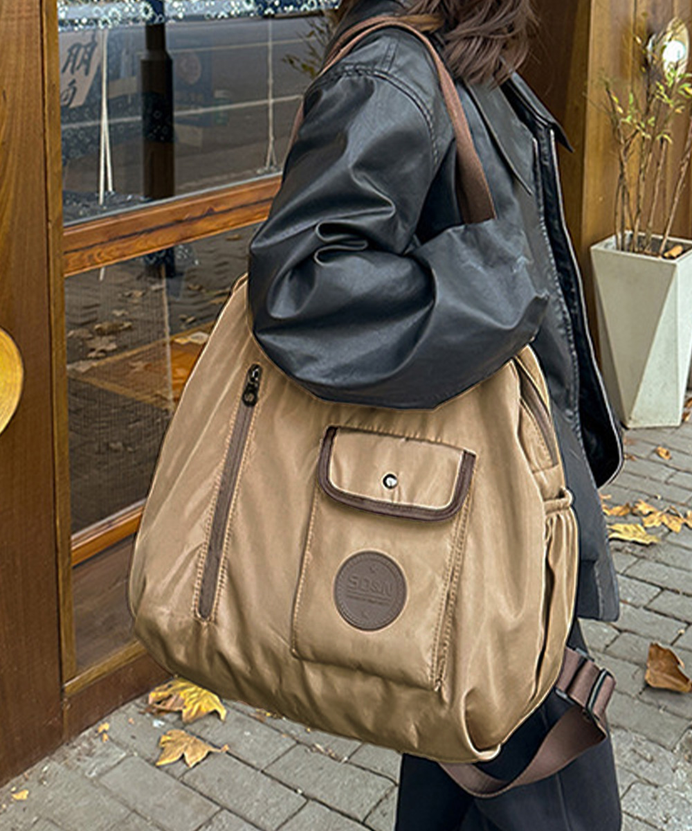 素材:ナイロン+ポリエステル カラー:ブラック/ベージュ/グレー サイズ: 高さ:約45cm 上横幅:約40cm 底横幅:約41cm マチ:約12cm 持ち手高さ:約22cm 持ち手長さ:約60cm(調節不可、取り外し不可) ショルダー:約48-90cm(調節可、取り外し不可) ■収納について ・A4対応(22×31cm):〇 ・iPadmini対応(19.6×13.5×0.7cm):〇 ・長財布(10×20cm):〇 ・二つ折り財布:〇 ・キーケース:〇 ・ペットボトル横向き(500ml):〇 ・ペットボトル縦向き(500ml):〇 重さ:約488g 裏地:あり 内ポケット:あり ※すべて平置きサイズです(採寸方法違いより、多少の誤差がございますので、ご了承ください)。
