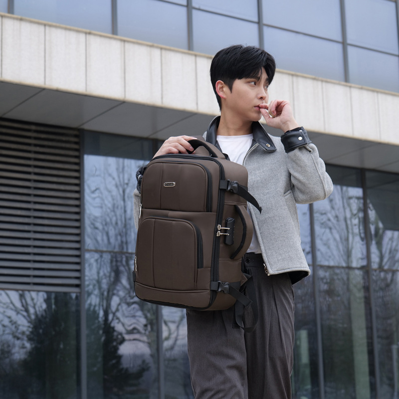 通勤からビジネス出張まで幅広く活躍する防水リュックです。 リュック、手提げ、ショルダーの三通りの使い方ができる多機能設計で、シーンに合わせて持ち方を変えられます。 防水加工を施した高品質素材を使用しているため、雨天時も安心して大切な書類やパソコンを持ち運べます。 複数のポケットで荷物を整理しやすく、ビジネスシーンでの使い勝手も抜群です。