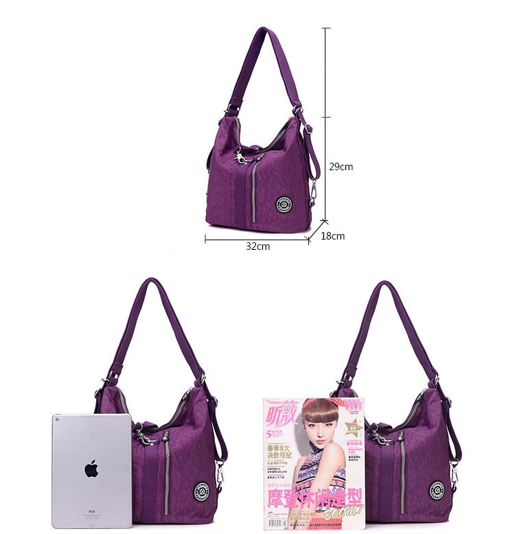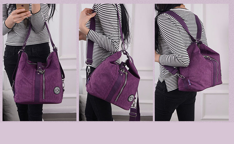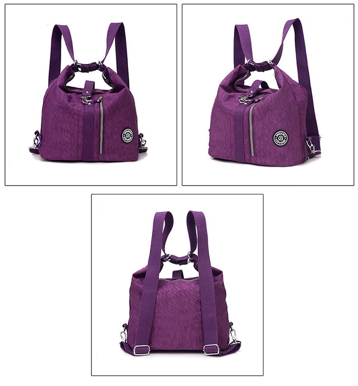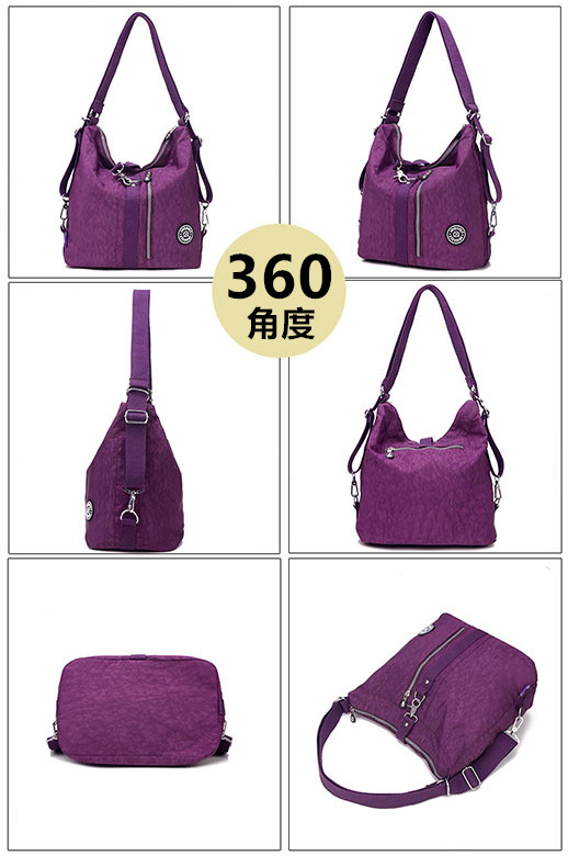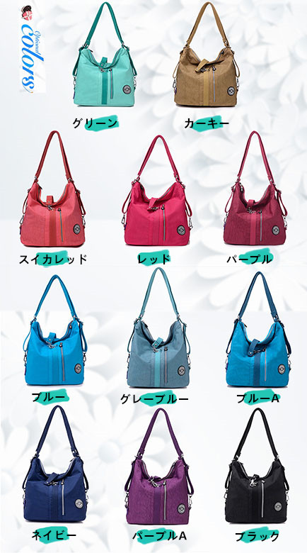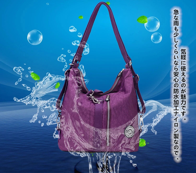 リュック、ショルダーバッグ、斜めがけバッグの三通りで使える便利な防水リュック。 防水加工されたナイロン素材で雨の日も安心してお使いいただけます。 豊富なカラーバリエーションでお好みに合わせて選べる女性向けデザインです。